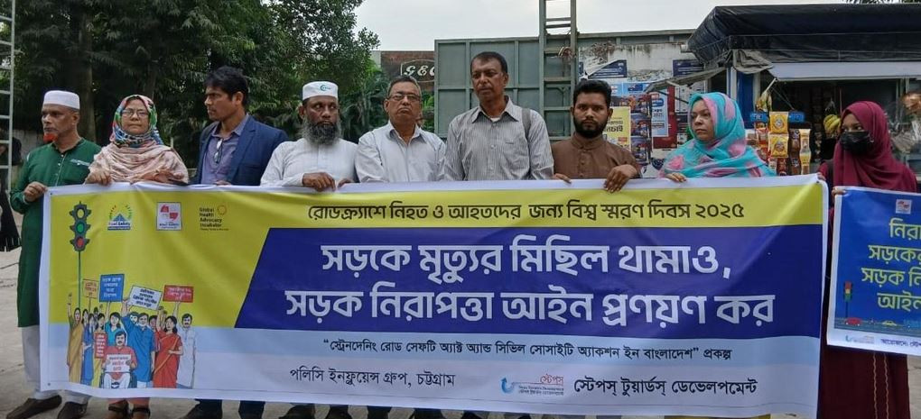 রোড় ক্রাশে নিহত ও আহতদের জন্য বিশ্ব স্মরণ দিবস ২০২৫ উদাপযন উপলক্ষে “সড়কে মৃত্যুর মিছিল থামাও, সড়ক নিরাপত্তা আইন প্রণয়নের দাবিতে” চট্টগ্রাম...