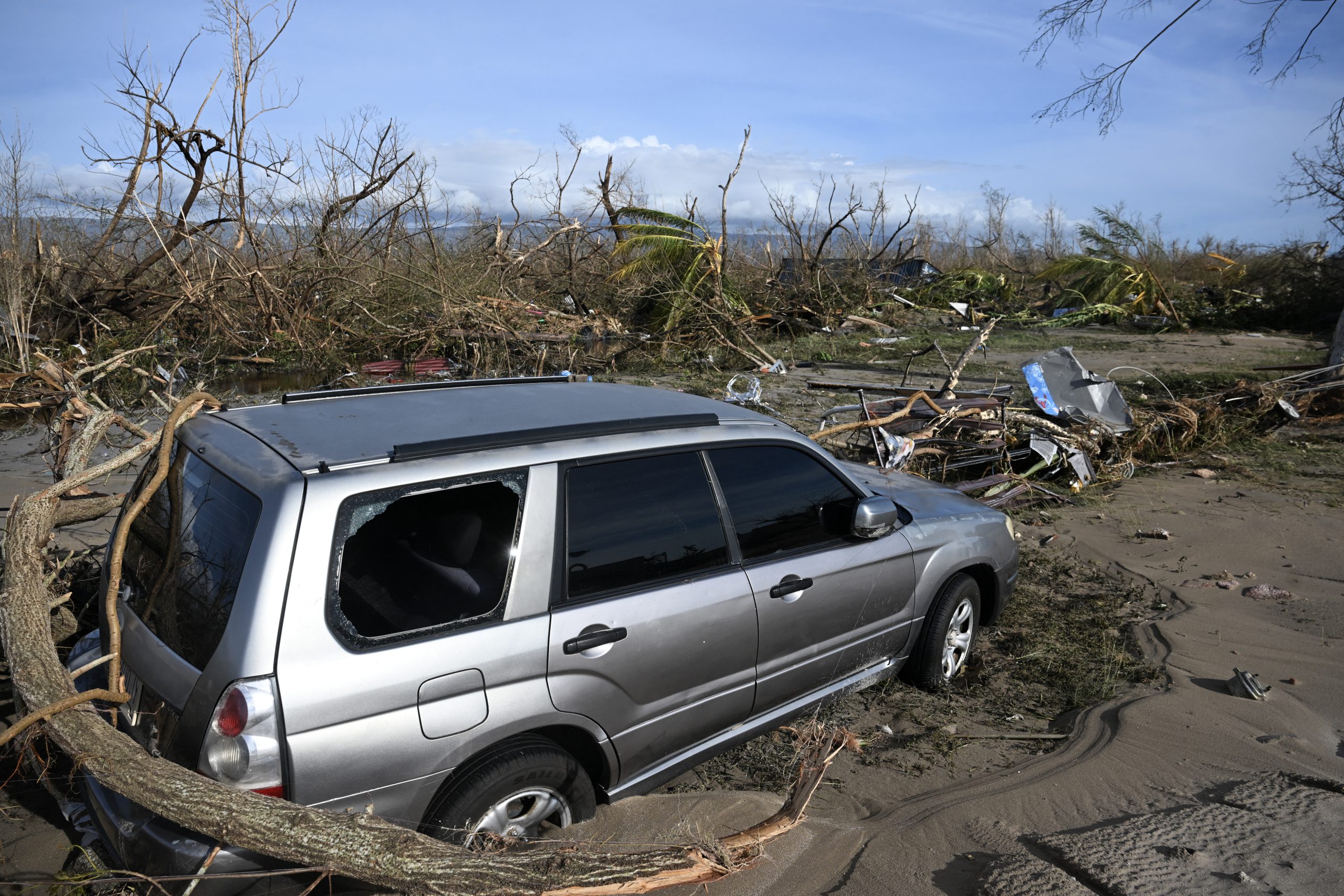 ২৯ অক্টোবর, ২০২৫ জামাইকার সেন্ট এলিজাবেথের ব্ল্যাক রিভারে হ্যারিকেন মেলিসার তাণ্ডবের পর রাস্তার মাঝে ক্ষতিগ্রস্ত গাড়ি। (ছবি: রিকার্ডো মাকিন / এএফপি)
