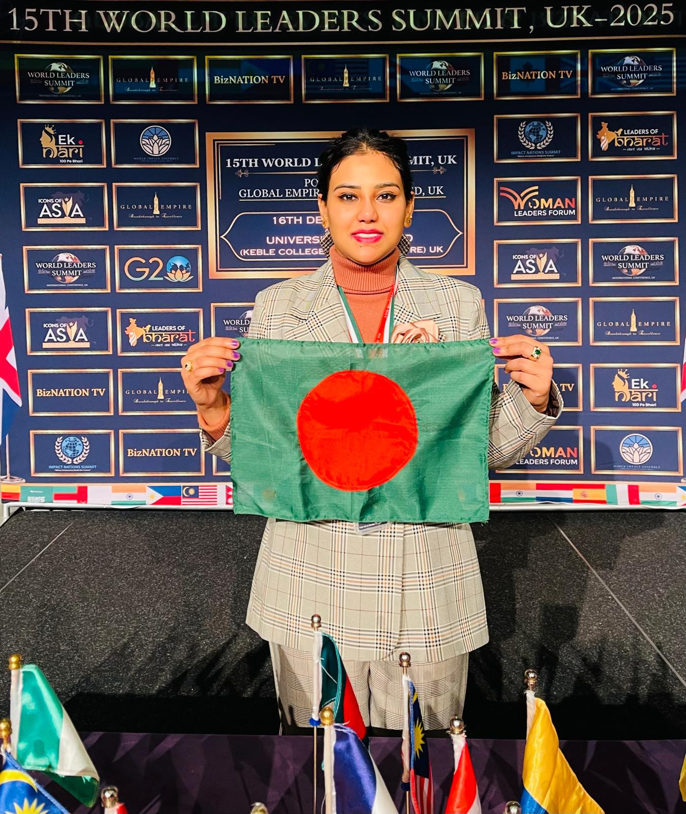যুক্তরাজ্যের ঐতিহাসিক অক্সফোর্ড বিশ্ববিদ্যালয়ে অনুষ্ঠিত ১৫তম ওয়ার্ল্ড লিডার্স সামিটে আন্তর্জাতিক অঙ্গনে অনন্য অবদানের স্বীকৃতি হিসেবে “Inspiring Woman of the Year – International Advocacy” পুরস্কারে ভূষিত হয়েছেন ব্রিটিশ বাংলাদেশি মিস তানাকা নাসরিন পিঙ্কি।