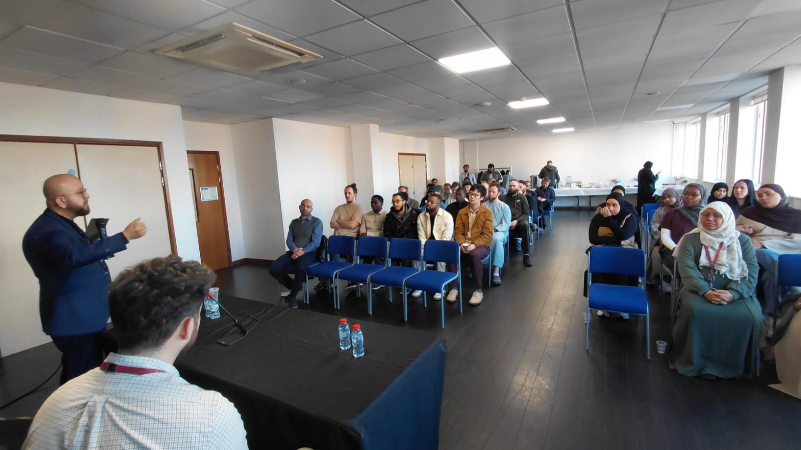 নিউ মুসলিম প্রজেক্টের এনগেজমেন্ট অফিসার ড. নাথান মুসা গাব্বিন্স সূরা আন-নাসরের তাৎপর্য তুলে ধরেন। উদ্বোধনী অনুষ্ঠানের শুরুতে স্বাগত বক্তব্যে মসজিদের সিইও জুনায়েদ আহমেদ বলেন, এই উদ্বোধন এমন একটি মুহূর্ত যার জন্য তিনি দীর্ঘদিন ধরে অপেক্ষা করছিলেন। তিনি জানান, দায়িত্ব নেওয়ার পর নতুন মুসলিমদের সাথে আলোচনাকালে একটি স্থায়ী ও নির্দিষ্ট জায়গার প্রয়োজনীয়তা বারবার উঠে আসে—এবং এই হাব সেই চাহিদারই প্রতিফলন । তিনি বলেন, এই হাবটি নতুন মুসলিমদের জন্য গঠনমূলক শিক্ষা, একান্ত পরামর্শ, সামাজিক কার্যক্রম এবং মানসিক সহায়তা প্রদান করবে । তিনি এই প্রজেক্টের সাথে সম্পৃক্ত সকলকে ধন্যবাদ জানান। তিনি বলেন, আমরা এই সেবাকে আরও বিস্তৃত করতে চাই । নতুন মুসলিম ভাই-বোনদের যে সহায়তা প্রয়োজন, তা অনেক বড়। আমাদের উদ্যোগও সেই অনুযায়ী বাড়াতে হবে। ইস্ট লন্ডন মসজিদের চেয়ারম্যান ড. আবদুল-হাই মুর্শেদ বলেন, তিনি চেয়ারম্যান হিসেবে নয়, বরং একজন মুসল্লি হিসেবে কথা বলছেন, যিনি প্রথম ১৯৭০-এর দশকের শেষের দিকে শিশু অবস্থায় এই মসজিদে প্রবেশ করেছিলেন। তিনি বলেন, এটা এমন এক ধরনের সমাবেশ, যা নবী (সাঃ) করতেন। বিভিন্ন পেশা ও জীবনের মানুষ একত্রিত হয়েছেন—কেউ বাধ্য হয়ে নয়, বরং নিজেদের ইচ্ছায়। আপনাদেরকে সর্বোত্তম পুরস্কার দেওয়া হয়েছে- ঈমানের নিয়ামত।” তিনি বলেন এই হাবটি শুধু নতুন মুসলিমদের জন্য একটি সেবাকেন্দ্র নয়, বরং যুক্তরাজ্যের সমগ্র মুসলিম সম্প্রদায়ের একটি যৌথ দায়িত্ব। এটাই এই দেশে মুসলিম হিসেবে আমাদের টিকে থাকার মূল ভিত্তি। আমাদের গড়ে যেতে হবে । এখন পর্যন্ত আমরা যা অর্জন করেছি, তা প্রয়োজনের তুলনায় সমুদ্রের এক ফোঁটা মাত্র। ড. নাথান মুসা নতুন মুসলিমদের অভিজ্ঞতা তুলে ধরে বলেন, আমাদের জন্য ‘বিশ্বাস’ খুবই গুরুত্বপূর্ণ ।