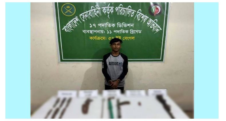 সুনামগঞ্জের জগন্নাথপুর উপজেলায় থানা পুলিশ ও সেনাবাহিনীর যৌথবাহিনীর অভিযানে বিপুল পরিমাণ অস্ত্রসহ এক যুবককে আটক করা হয়েছে। বৃহস্পতিবার (২০ আগস্ট) ভোররাতে তাকে আটক করা হয়।