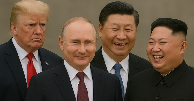 দ্বিতীয় বিশ্বযুদ্ধের ৮০ বছর পূর্তি উপলক্ষে কুচকাওয়াজে উত্তর কোরিয়ার নেতা কিম জং উন এবং রুশ প্রেসিডেন্ট ভ্লাদিমির পুতিন যখন শি জিনপিংয়ের সঙ্গে ছিলেন তখন ট্রাম্প শি জিনপিংকে সম্বোধন করে ট্রুথ সোশ্যালে এক পোস্টে লিখেছেন, ভ্লাদিমির পুতিন এবং কিম জং উনকে আমার উষ্ণ শুভেচ্ছা জানাই, কারণ আপনারা আমেরিকার বিরুদ্ধে ষড়যন্ত্র করছেন।