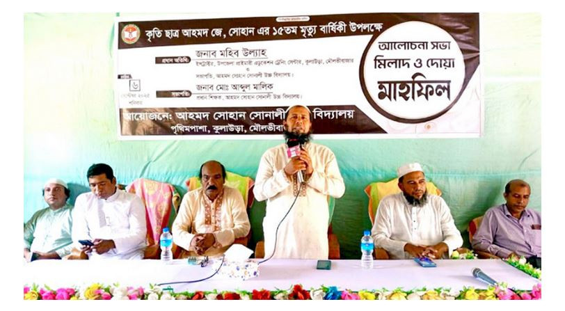 মৌলভীবাজারের কুলাউড়া উপজেলার পৃথিমপাশা ইউনিয়নের ধামুলীতে অবস্থিত আহমদ সোহান সোনালী উচ্চবিদ্যালয়ের উদ্যোগে বিদ্যালয়ের প্রতিষ্ঠাতা আহমেদ জে. সোহানের ১৫তম মৃত্যুবার্ষিকী উপলক্ষে আলোচনাসভা, দোয়া ও মিলাদ মাহফিল অনুষ্ঠিত হয়েছে।