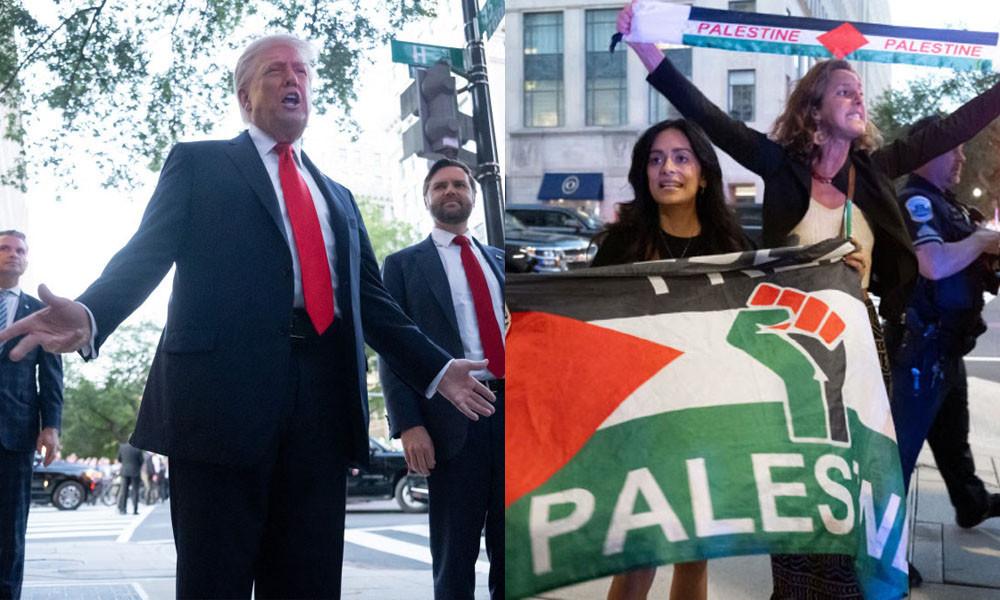 তবে একইসঙ্গে দেখা যায় বিপরীত চিত্রও। গাজায় ইসরায়েলের গণহত্যামূলক আগ্রাসনের প্রতি যুক্তরাষ্ট্রের অন্ধ সমর্থন দেখানোর নীতির প্রতিবাদে সেখানে উপস্থিত একদল বিক্ষোভকারী দুয়ো ধ্বনি দেন। তারা ফিলিস্তিনের পতাকা উঁচিয়ে বলতে থাকেন, ‘ডিসিকে মুক্ত কর! ফিলিস্তিনকে মুক্ত কর! ট্রাম্প হচ্ছেন একালের হিটলার।’