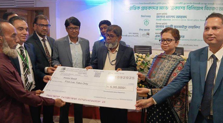 মৌলভীবাজার প্রতিনিধি\ মৌলভীবাজারের লিড ব্যাংক আল-আরাফাহ্ধসঢ়; ইসলামী ব্যাংক পিএলসি এর আয়োজনে ও বাংলাদেশ ব্যাংক এর নির্দেশনায় ‘প্রকাশ্যে বিনিয়োগ বিতরণ’ করা হয়েছে। বৃহস্পতিবার দুপুরে মৌলভীবাজার শহরের একটি অভিজাত হোটেলের হল রুমে ক্ষুদ্র উদ্যোক্তাতের মধ্যে প্রধান অতিথি হিসেবে ঋনের চেক তুলে দেন বাংলাদেশ ব্যাংক, সিলেট কার্যালয়ের নির্বাহী পরিচালক খালেদ আহমদ। আল আরাফাহ্ধসঢ়; ইসলামী ব্যাংক পিএলসি উপ-ব্যবস্থাপনা পরিচালক এস. এম. আবু জাফর সভাপতিত্বে বিশেষ অতিথির বক্ত্য রাখেন বাংলাদেশ ব্যাংক এর অতিরিক্ত পরিচালক কাজী মুতমাইন্না তাহমিদা। অনুষ্ঠানে ১০, ৫০ এবং ১০০ টাকার হিসাবধারী প্রান্তিক, ভূমিহীন কৃষক, নি¤œ আয়ের পেশাজীবী, স্কুল ব্যাংকিং হিসাবধারী এবং ক্ষুদ্র ব্যাবসায়ীদের জন্য গঠিত পুনঃঅর্থায়ন স্কিম এর আওতায় প্রান্তিক গ্রাহকদের মাঝে প্রকাশ্যে বিনিয়োগ সংক্রান্ত ঋণ বিতরণ করা হয়। অনুষ্ঠানে মৌলভীবাজারে অবস্থিত ৩৮ ব্যাংকের মাধ্যমে তরুণ ও নতুন উদ্যোক্তাতের মধ্যে মাত্র ৭% সুদে ১ কোটি ৫৮ লাখ টাকা ঋণ দেয়া হয়।