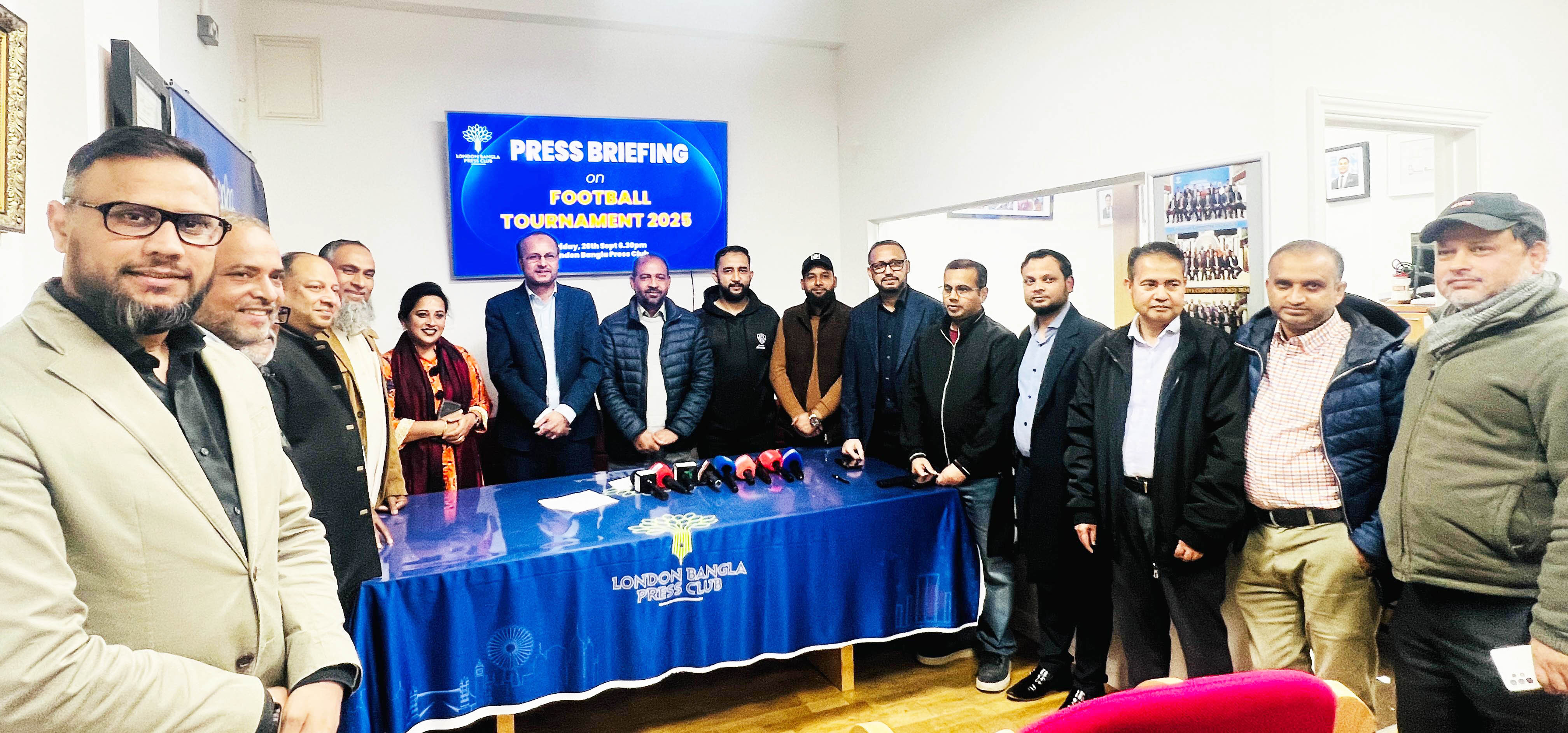 আগামী ৫ অক্টোবর রোববার পূর্ব লন্ডনের স্টেপনী গ্রীন ফুটবল মাঠে দুপুর ১টা থেকে অনুষ্ঠিত হবে লন্ডন বাংলা প্রেস ক্লাবের ফুটবল টুর্নামেন্ট ২০২৫ । টুর্নামেন্টকে সামনে রেখে বিলেতের বাংলা মিডিয়ার সাংবাদিকদের মধ্যে উৎসবের আমেজ বিরাজ করছে। এ উপলক্ষে ২৬ সেপ্টেম্বর শুক্রবার সন্ধ্যায় লন্ডন বাংলা প্রেস ক্লাব হলে এক সংবাদ সম্মেলনের আয়োজন করা হয় । ক্লাবের জেনারেল সেক্রেটারি তাইসির মাহমুদ-এর সঞ্চালনায় এবং প্রেসিডেন্ট মোঃ জুবায়েরের সভাপতিত্বে সংবাদ সম্মেলনে ফুটবল টুর্নামেন্টের বিস্তারিত তথ্যাদি তুলে ধরেন ট্রেজারার সালেহ আহমেদ, ইভেন্ট সেক্রেটারি রুপি আমিন, ফুটবল টুর্নামেন্ট পরিচালনা সংস্থা লন্ডন স্পোটিফের কো-অর্ডিনেটর ফরহাদ উদ্দিন ও ম্যানেজার মুহি মিকদাদ ।