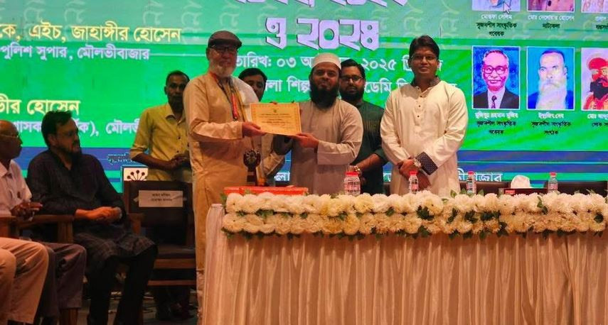 মৌলভীবাজার প্রতিনিধি \ মৌলভীবাজার জেলা শিল্পকলা একাডেমি কর্তৃক ২০২২, ২০২৩ ও ২০২৪ সনের গুণীজন সম্মাননা প্রদান করা হয়েছে। গতকাল শুক্রবার (৩ অক্টোবর) সন্ধ্যায় জেলা শিল্পকলা একাডেমিতে সম্মাননা অনুষ্ঠানে প্রধান অতিথি ছিলেন জেলা প্রশাসক মো. ইসরাইল হোসেন। অতিরিক্ত জেলা প্রশাসক (সার্বিক) তানভীর হোসেন এর সভাপতিত্বে অনুষ্ঠানে বিশেষ অতিথি ছিলেন অতিরিক্ত পুলিশ সুপার আসিফ মহিউদ্দিন, জেলা শিল্পকলা একাডেমি সদস্য সচিব আহমেদ মঞ্জুরুল হক চৌধুরী। গুণীজন সম্মাননা যারা পেলেন, মোহাম্মদ আকবর (সৃজনশীল সাংস্কৃতিক গবেষক), সেলিম চৌধুরী (কণ্ঠশিল্পী), আবদাল মাহবুব কোরেশী (নাট্যকলা), ওয়ালীউর রহমান (চারুকলা), দুর্গাপ্রসাদ দেশোয়ারা (যন্ত্রসংগীত), মোস্তফা সেলিম (সৃজনশীল সাংস্কৃতিক গবেষক), মো. দেলোয়ার হোসেন (নাট্যকলা), প্রসাদ দাস (যন্ত্রশিল্পী) , মো. তারেক ইকবাল চৌধুরী (কন্ঠসংগীত) সিরাজুল ইসলাম ভোলা (লোকসংস্কৃতি), মুজিবুর রহমান মুজিব (সৃজনশীল সাংস্কৃতিক গবেষক), ইন্দ্রজিৎ দেব (সৃজনশীল সাংস্কৃতিক গবেষক), মো. আব্দুস সহীদ (লোক সংস্কৃতি), মো. তাজুল ইসলাম (নাট্যকলা) ও নাদিরা আক্তার (কণ্ঠশিল্পী)। এ সময় বিশিষ্ট ব্যক্তিবর্গ ও সাংবাদিকরা উপস্থিত ছিলেন।