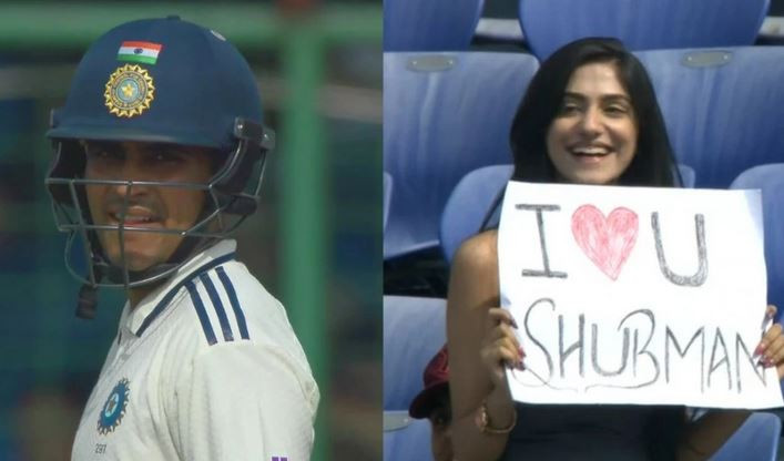 ভারতের প্রথম ইনিংস চলাকালীন, শুবমান গিল ও যশস্বী জয়সওয়াল তাদের ম্যারাথন ইনিংসে ব্যাট করছিলেন। ঠিক তখনই টিভি ক্যামেরায় ধরা পরে এক তরুণী ভক্ত হাতে প্ল্যাকার্ড নিয়ে প্রেম নিবেদন করছেন গিলকে।