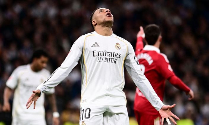 সেভিয়ার বিপক্ষে কঠিন এক জয়ে লা লিগার শীর্ষে থাকা বার্সেলোনার ওপর চাপ ধরে রাখল রিয়াল মাদ্রিদ। এই ম্যাচেই রিয়ালের জার্সিতে এক ক্যালেন্ডার বছরে ৫৯ গোল করে ক্রিস্টিয়ানো রোনালদোর রেকর্ডে ভাগ বসালেন কিলিয়ান এমবাপ্পে।