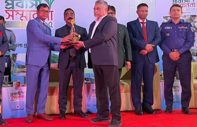 সিলেট জেলা প্রশাসনের উদ্যোগে শনিবার (২৭ ডিসেম্বর) নগরীর কবি নজরুল ইসলাম অডিটোরিয়ামে ‘প্রবাসী সম্মাননা–২০২৫’ প্রদান অনুষ্ঠান অনুষ্ঠিত হয়। এতে বিভিন্ন ক্ষেত্রে বিশেষ অবদান রাখা প্রবাসী ব্যক্তিত্বদের হাতে সম্মাননা তুলে দেওয়া হয়।