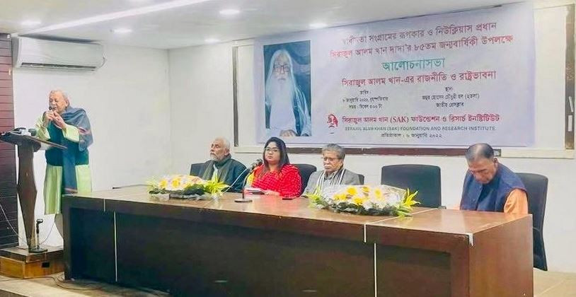 স্বাধীনতা সংগ্রামের অন্যতম রুপকার, মুক্তিযুদ্ধের অন্যতম সংগঠক ও নিউক্লিয়াস প্রধান সিরাজুল আলম খানের ৮৫তম জন্মবার্ষিকী উপলক্ষে বৃহস্পতিবার (৮ জানুয়ারি) বিকেলে ঢাকা জাতীয় প্রেসক্লাবের জহুর হোসেন চৌধুরী মিলনায়তনে ‘সিরাজুল আলম খানের রাজনীতি ও রাষ্ট্রভাবনা’ শীর্ষক এক আলোচনা সভার আয়োজন করে সিরাজুল আলম খান (এসএকে) ফাউন্ডেশন ও রিসার্চ ইনস্টিটিউট।