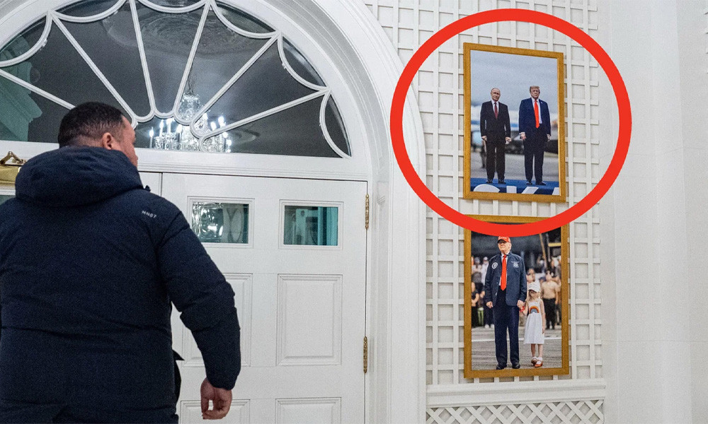 আগস্টে আলাস্কা শীর্ষ বৈঠকে তোলা যুক্তরাষ্ট্র ও রাশিয়ার প্রেসিডেন্টদের ওই পোজ দেওয়া ছবিটি পাম রুমের দেয়ালে টাঙানো হয়েছে। পাম রুমটি ওয়েস্ট উইং ও প্রেসিডেন্টের আবাসিক অংশকে সংযুক্ত করে।