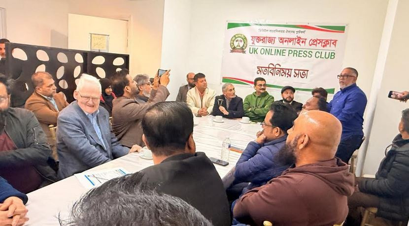 যুক্তরাজ্য অনলাইন প্রেসক্লাবের উদ্যোগে ৬ ই এপ্রিল সোমবার সন্ধ্যা ৭টায় ইস্ট লন্ডনের পঞ্চখানা হলে এক মতবিনিময় সভা সংগঠনের সভাপতি ডঃ মোঃ জয়নুল আবেদীন রোজের সভাপতিত্বে এবং সাধারণ সম্পাদক ডঃ আজিজুল আম্বিয়া এর সঞ্চালনায় অনুষ্ঠিত হয়। এতে প্রধান অতিথি হিসেবে উপস্থিত ছিলেন বাংলাদেশ থেকে আগত দৈনিক তৃতীয় মাত্রার সম্পাদক রবীন সিদ্দিকী। বিশেষ অতিথি হিসেবে উপস্থিত ছিলেন ইউকেবাংলা রিপোর্টার্স ইউনিটির সাবেক প্রেসিডেন্ট সাংবাদিক